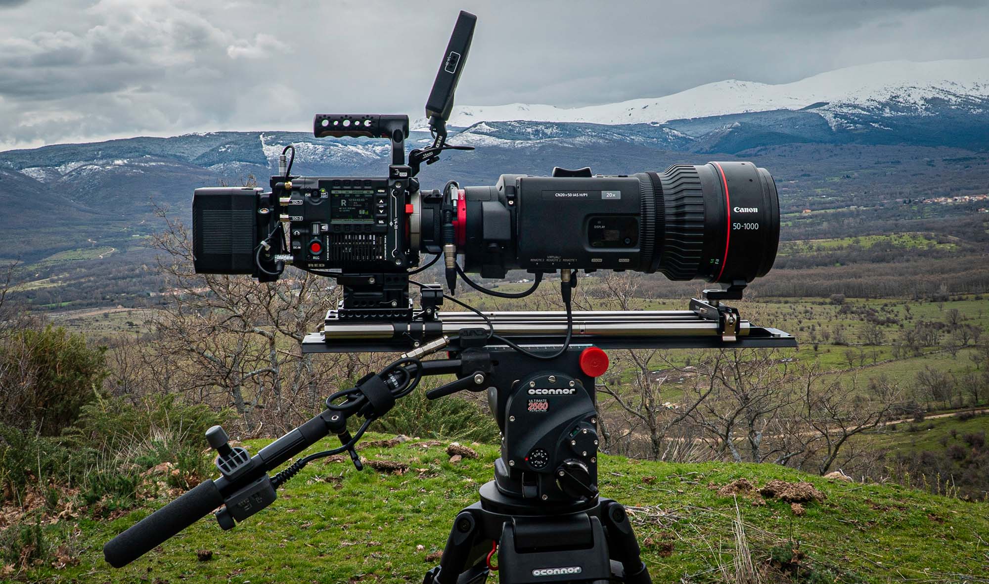 - TRÍPODE OCONNOR 2560 Y ACCESORIOS. Entre la cámara V-Raptor y el objetivo el peso supera los 10KG, no usar un trípode con el que se consigan imágenes estables es como tener un gigante con pies de barro. Este trípode profesional es el indicado para usar dicho equipo de filmación en óptimas condiciones y fiabilidad.